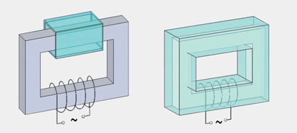 同屬工頻感應(yīng)的 GTG30,cosφ為什么能高達(dá)0.98以上呢?對(duì)此,我們借用圖4作簡單地說明。圖4中,在鐵芯、原邊繞組相同的條件下,副邊的包覆系數(shù)低,cosφ低;包覆系數(shù)高,cosφ高。 GTG30的主機(jī)非常巧妙地利用外殼作為副邊,包覆系數(shù)幾乎是百分之百,所以功率因數(shù)能如此之高。