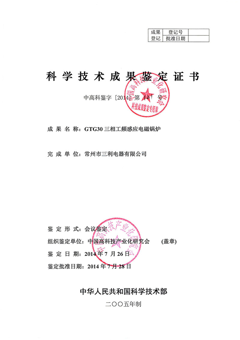 榮譽資質(zhì)- 工頻感應(yīng)電磁鍋爐銷售部:電話:0519-86973218 86957150